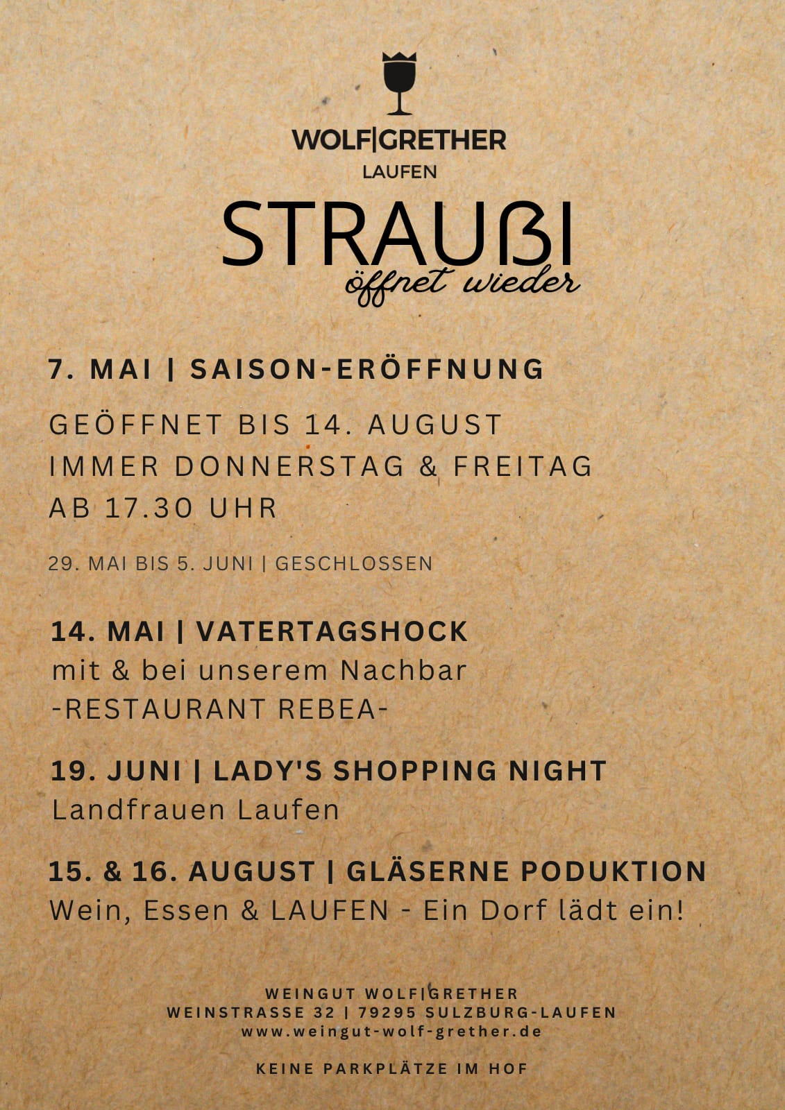 Das Weingut Wolf & Grether liegt im Herzen der Winzergemeinde Laufen bei Sulzburg. Der Ort ist nicht nur für das angenehme Klima und die herrliche Landschaft bekannt, sondern auch für seine hervorragenden Weine. So profitieren auch unsere Weine von den aussergewöhnlich guten Bedingungen. Im Jahr 2016 wurde das Weingut Wolf gegründet. Wir setzen bei der Weinbereitung stets auf die neuesten Erkenntnisse und Techniken. Die Weine überzeugen durch Kombination aus Tradition und innovativen Ideen mit einem Maximum an Qualität und Geschmack. Dabei ist die Leidenschaft vom Weinberg bis zum Genuss des fertigen Weines zu spüren.